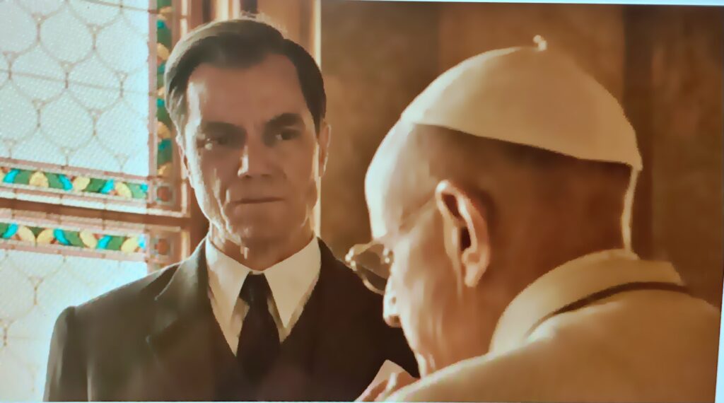 One of the best episodes of the film is a fictional one, ironically. It is a never-occurred meeting between judge Jackson and the pope Pius XII, signore Pacelli ( played in the film very precisely and professionally by the Italian actor Giuseppe Cederna ). Educationally-wise, the short scene in which the American judge is snapping to the master of Vatican on their institution and his personal shameful role during WWII and with regard to the Holocaust, is truly important. These kinds of gems in a featured film are quite capable to generate a real interest among many people in the audience, who would like to know more about it and will start to check and read about it after seeing it in the movie. And this is a very positive outcome of the film’s researching the core of anti-humanity.