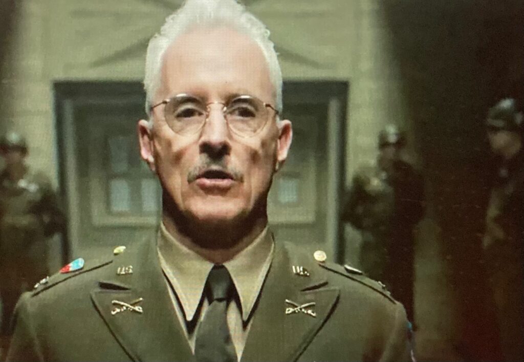 Plus, the real story of the US Army’s young translator sergeant Howie Triest ,who was assigned to the commander of the prison for the top Nazi command, Colonel Burton C. Andrus ( who is played quite authentically by John Slattery ) is performed in the film by the British actor Leo Woodall with heartfelt effort and devotion.