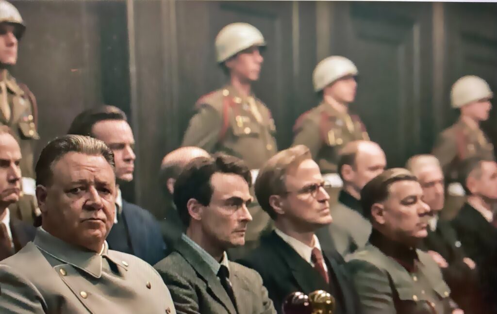 Genre-wise, it is a rather featured historical chronicle which in a too-typical Hollywood manner re-tells a very important moment in the modern history, the setting, beginning and the outcome of the first international Nuremberg tribunal back in 1945-1946. The date which actually was not properly commemorated , or maybe not yet. We generally have had a problem with commemoration of all those WWII and Holocaust connected dates throughout 2025 due to the drastically changed atmosphere in the world which now prefers to ignore the facts of the Holocaust and its lessons. It is not ‘fashionable’ any longer. Not prestigious. Simply said, it is not required any longer in the way it was so for the decades.